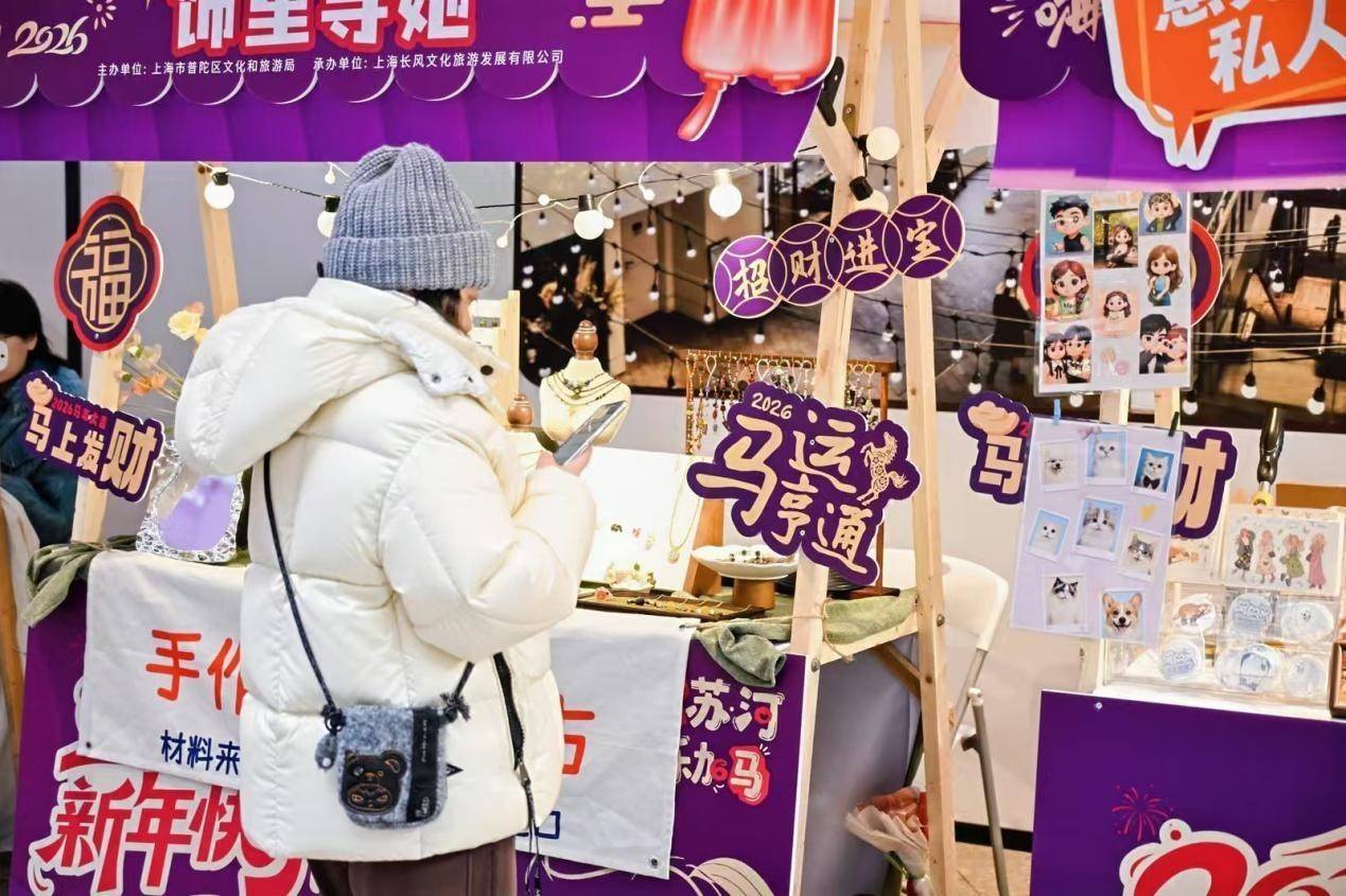 新年市集涵盖沿沪宁产业创新带城市精品非遗、云南西藏以及长三角地区品质好物、文化创意产品等,南京绒花、无锡惠山泥人、常州缠花技艺、苏州宋锦织造、南通蓝印花布、扬州通草花技艺、镇江肴肉、泰州早茶,普陀区竹丝编、长征纸艺、海派漆艺、传统锔瓷、梭编技艺等非遗项目集中亮相,传承人亲临现场,让市民游客近距离感受传统手工艺的魅力;普陀区书法家协会、普陀区美术家协会也将现场泼墨送“宝”;盒马专区设置新品试吃、乐道汽车展示及温馨热闹的宠物运动会,全方位覆盖亲子家庭、养宠人群及年轻消费群体,构建可逛、可玩、可购的开放式社交消费场景。